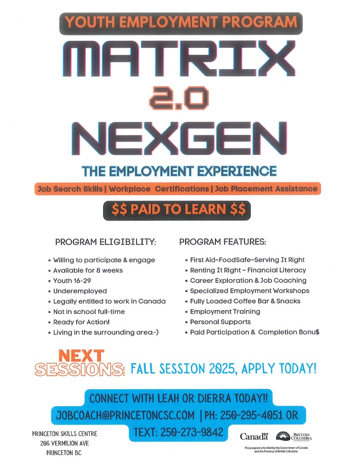 The Princeton & District Community Skills Centre/WorkBC will be closed tomorrow, Thursday January 1st, 2026 for New Years Day.